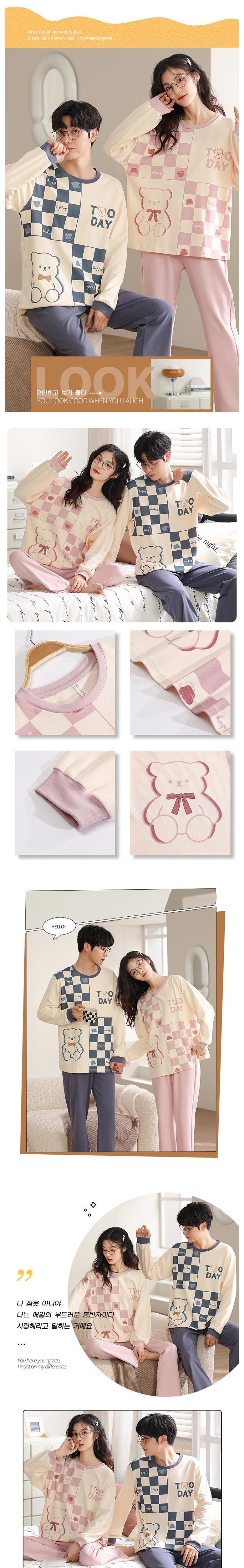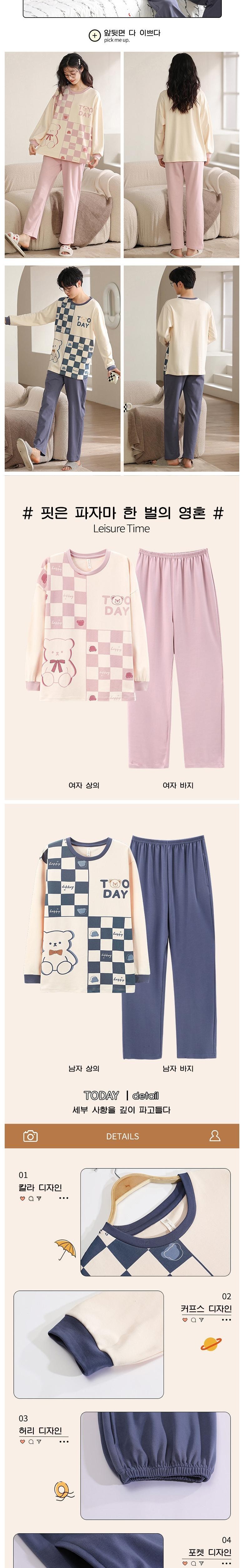 춘계 짱편한 주머니 극세사 커플 잠옷 수면 긴팔 빅사이즈 커플 마약수면 상하 파자마세트 커플 고급스러움