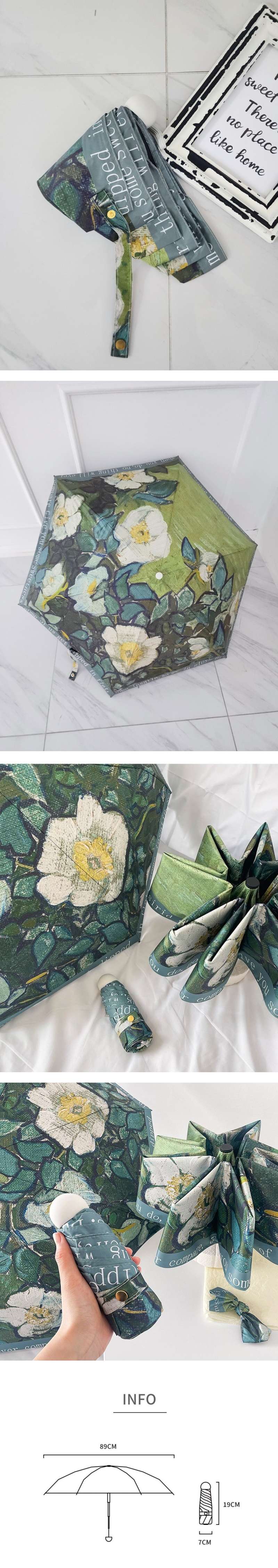 5단 양우산 암막 꽃 무늬 미니 휴대용 양산 우산 겸용