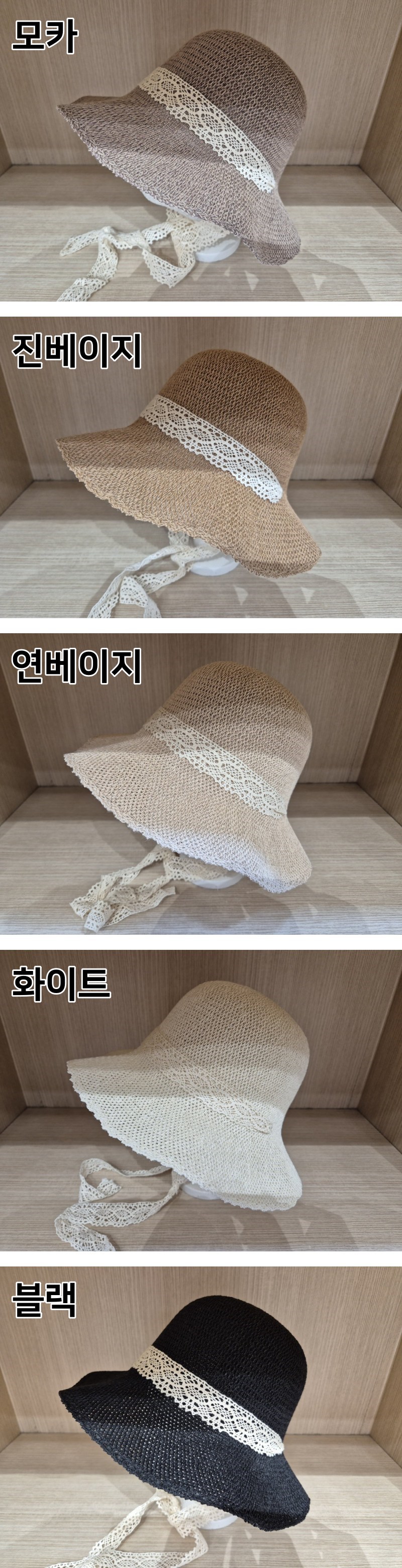 레이스 띠 턱 끈 밀짚 벙거지 여성 여행 모자