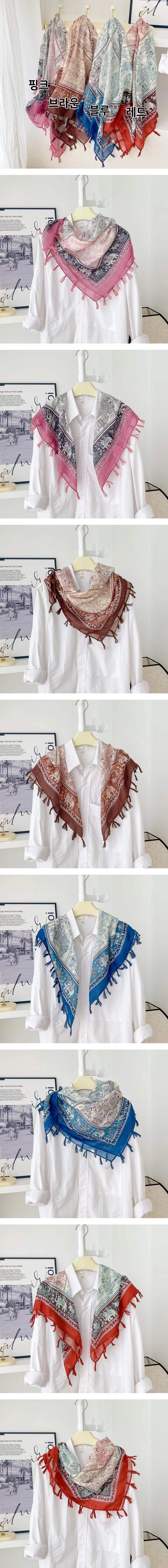 문양 정사각 테슬 스카프 중년 여성 봄 간절기색상 : 핑크,브라운,블루,레드사이즈 : 90cm * 90cm소재 : 폴리100%*사이즈는 재는 방식에 따라 2~3cm내외의 오차가 있을수 있습니다.