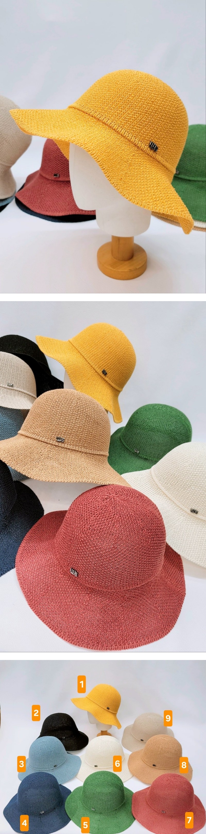 여성 넓은 챙 무지 니트 벙거지 모자 휴양지색상 : 1,2,3,4,5,6,7,8,9사이즈 : 0소재 : 페이퍼,면*사이즈는 재는 방식에 따라 2~3cm내외의 오차가 있을수 있습니다.