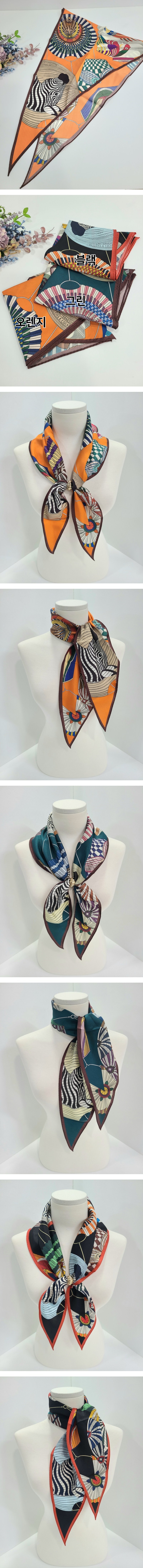 국산 실크 100 얼룩말 마름모 미니 스카프 봄색상 : 오렌지,그린,블랙사이즈 : 0소재 : 실크100%*사이즈는 재는 방식에 따라 2~3cm내외의 오차가 있을수 있습니다.
