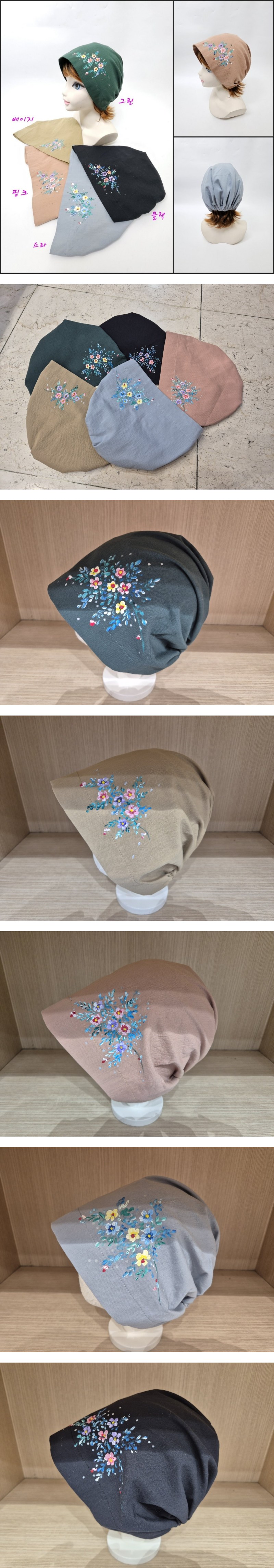 꽃 페인팅 면 두건 비니 터번 중년 여성 모자색상 : 그린,연베이지,핑크,소라,블랙사이즈 : 0소재 : 면,폴리*사이즈는 재는 방식에 따라 2~3cm내외의 오차가 있을수 있습니다.