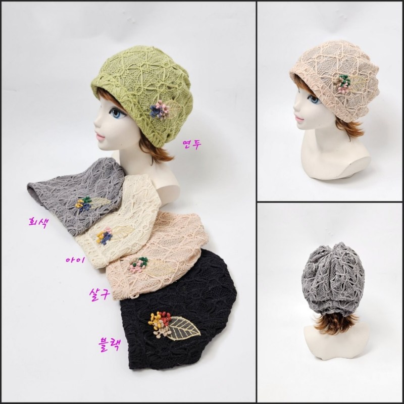 꽃 자수 체크 레이스 여성 두건 비니 모자 봄색상 : 연두,회색,아이보리,살구,블랙사이즈 : 0소재 : *사이즈는 재는 방식에 따라 2~3cm내외의 오차가 있을수 있습니다.