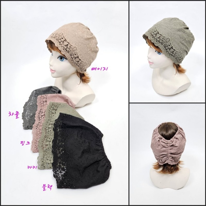면 레이스 중년 여성 두건 비니 터번 모자 봄색상 : 블랙,카키,핑크,차콜,베이지사이즈 : 0소재 : 면*사이즈는 재는 방식에 따라 2~3cm내외의 오차가 있을수 있습니다.