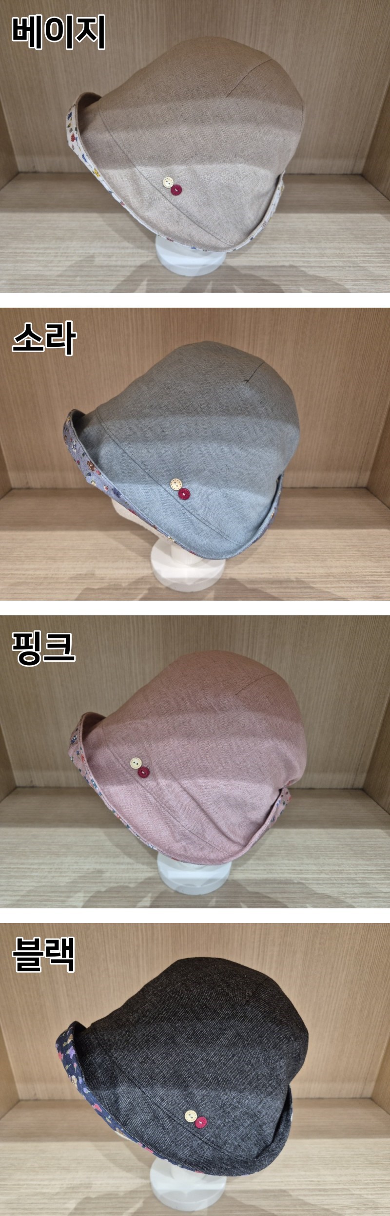 꽃챙 단추 깊은 벙거지 모자 중년 여성 버킷햇