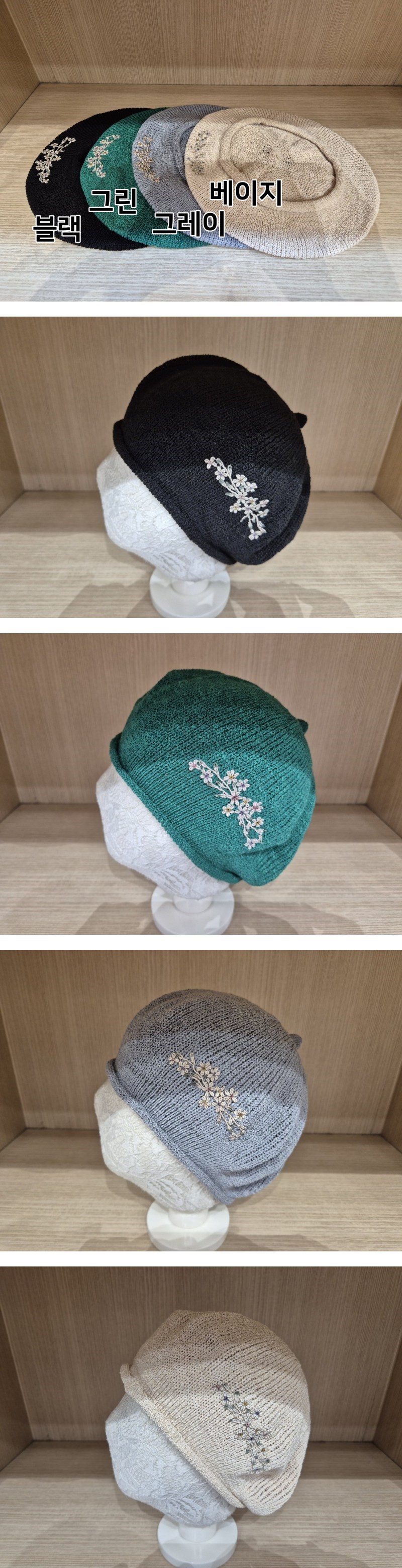 잔꽃 자수 니트 베레모 중년 여성 카페 모자색상 : 블랙,그레이,베이지,그린사이즈 : 0소재 : 면,아크릴*사이즈는 재는 방식에 따라 2~3cm내외의 오차가 있을수 있습니다.