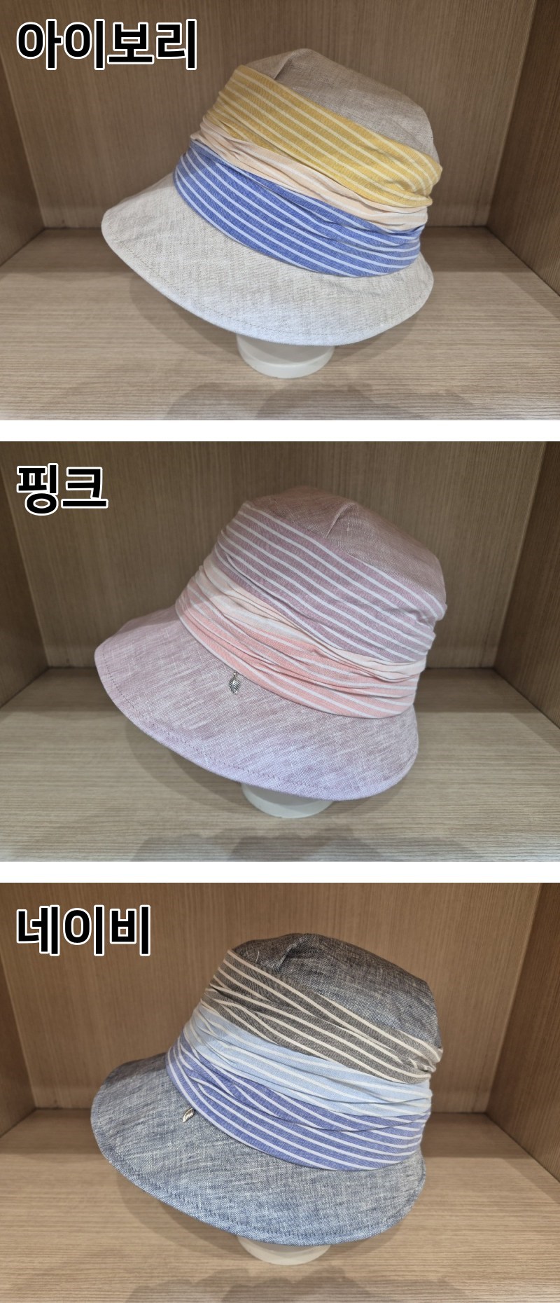 애슬릿 린넨 배색 스트라이프 벙거지 중년 여성 모자