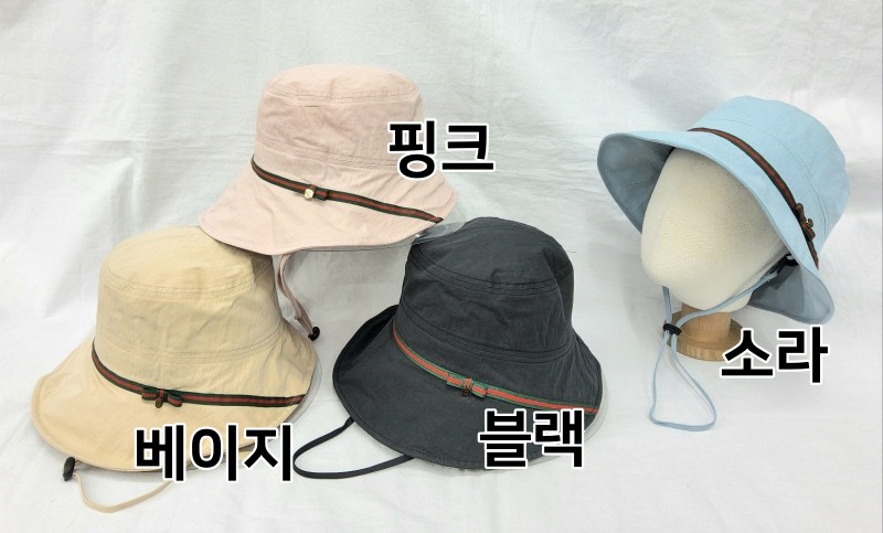 배색 띠 턱끈 벙거지 여성 골프 여행 봄 모자