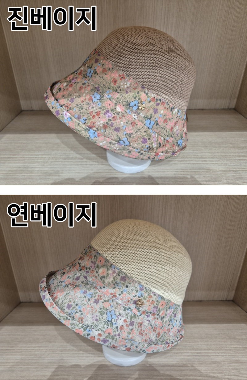 애슬릿 린넨 니트 투톤 잔꽃 벙거지 중년 여성 모자
