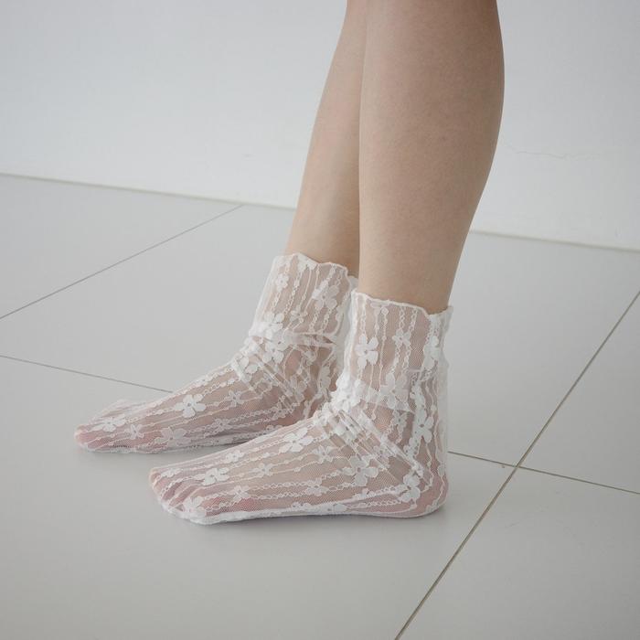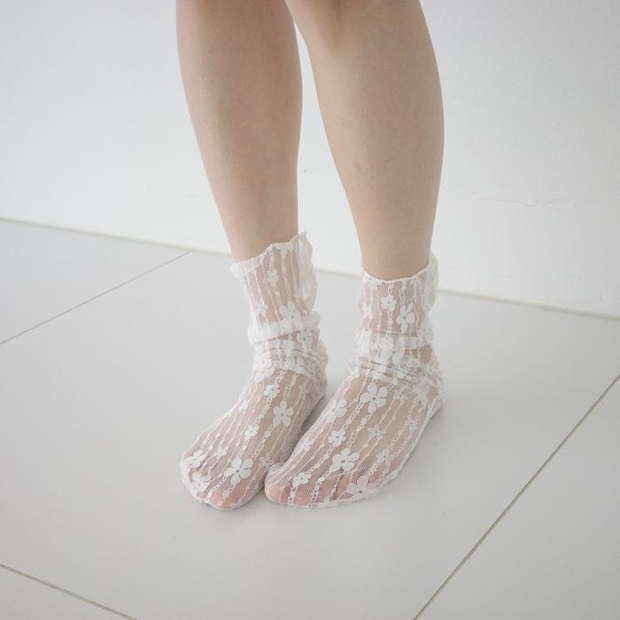 US2063 플라워 망사 시스루 양말 o 컬러 - 화이트, 베이지, 블랙 o 소재 - 나일론 88%, 스판 12% o 제조국 - 측정 방법에 따라 1~3cm 오차가 생길 수 있으며,
