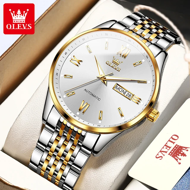 OLEVS 남성용 자동 기계식 손목시계 비즈니스 시계 신사 날짜 주간용 스테인리스 스틸 방수