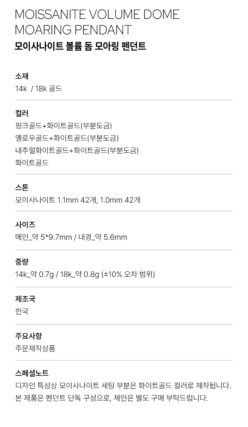 도로시 14k 모이사나이트 볼륨 돔 모아링 펜던트