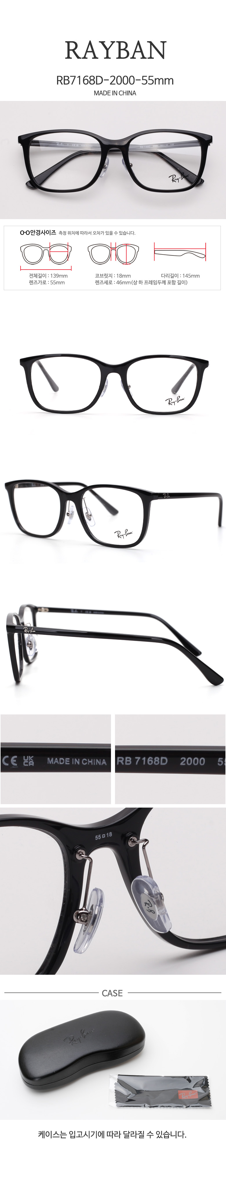 RB7168D 2000 55mm 레이벤 블랙 코받침 컬러뿔테 안경 RB7168D 2000 55mm Rayban LUXOTTICA RAYBAN