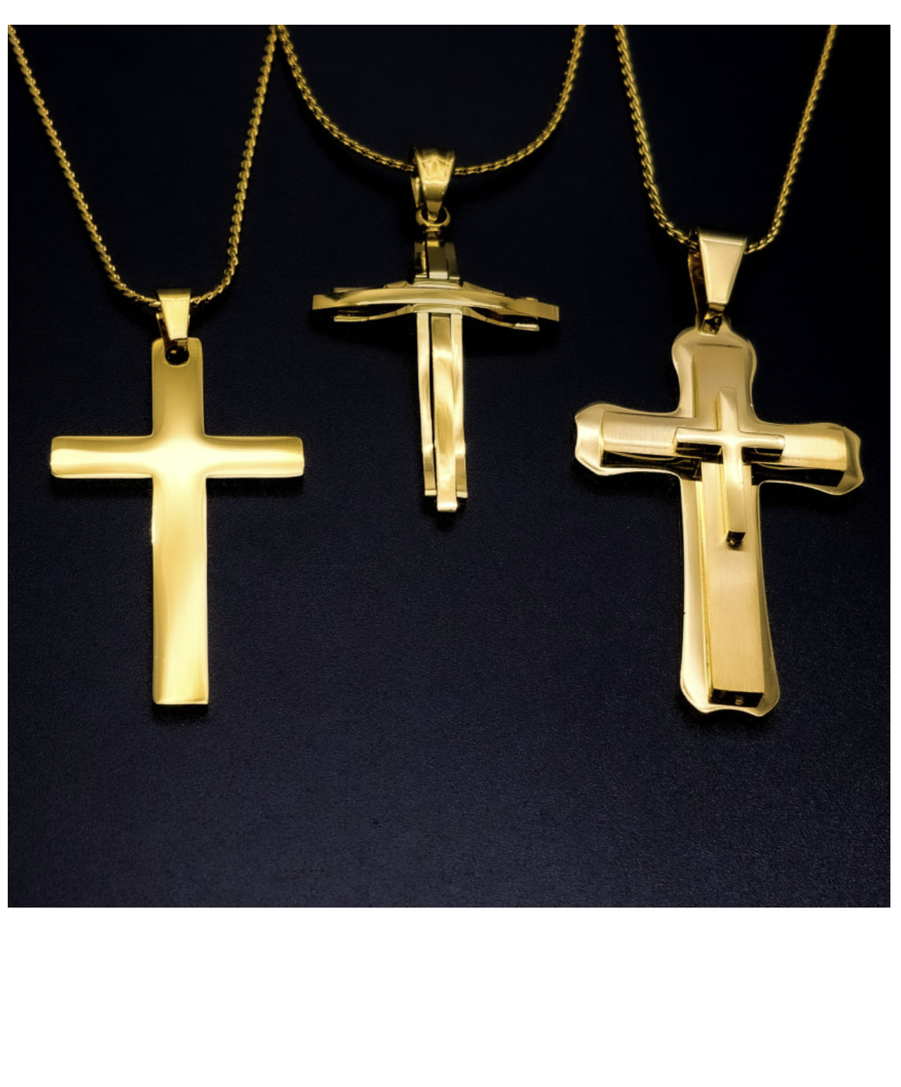 18K 골드 도금 남자 써지컬스틸 십자가 체인 목걸이 공격력 상승 보장