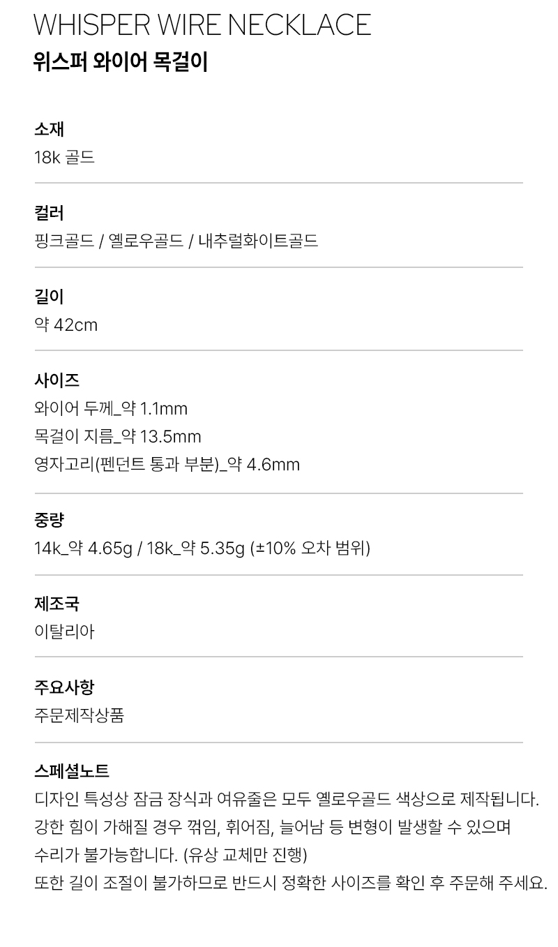 도로시 18k 위스퍼 와이어 목걸이 42cm