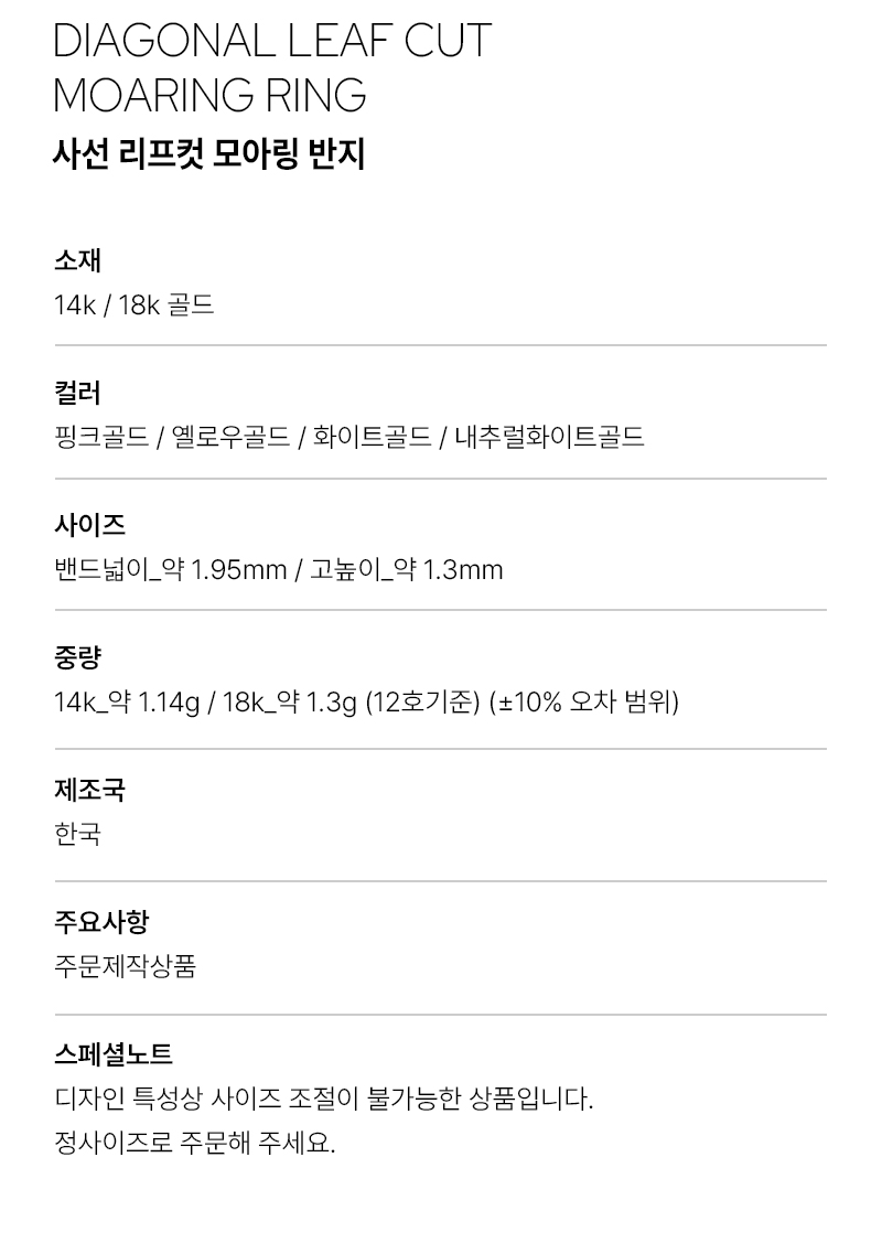 도로시 18k 사선 리프컷 모아링 반지 6호-14호