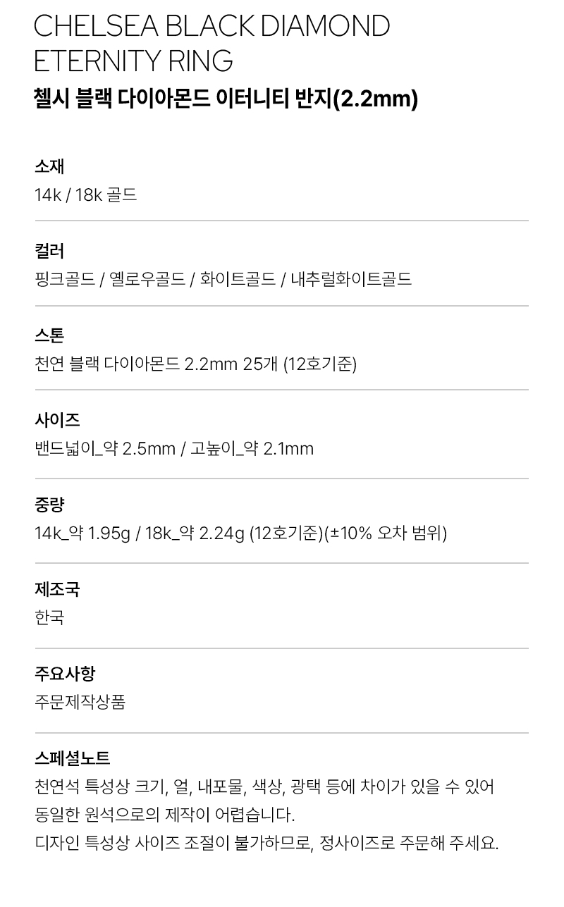 도로시 18k 첼시 블랙 다이아몬드 이터니티 반지(2.2mm) 6-10호