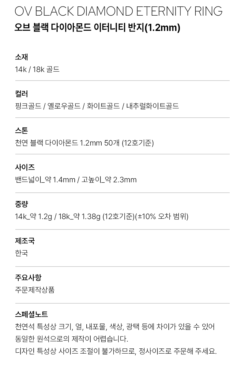 도로시 18k 오브 블랙 다이아몬드 이터니티 반지(1.2mm) 11-14호