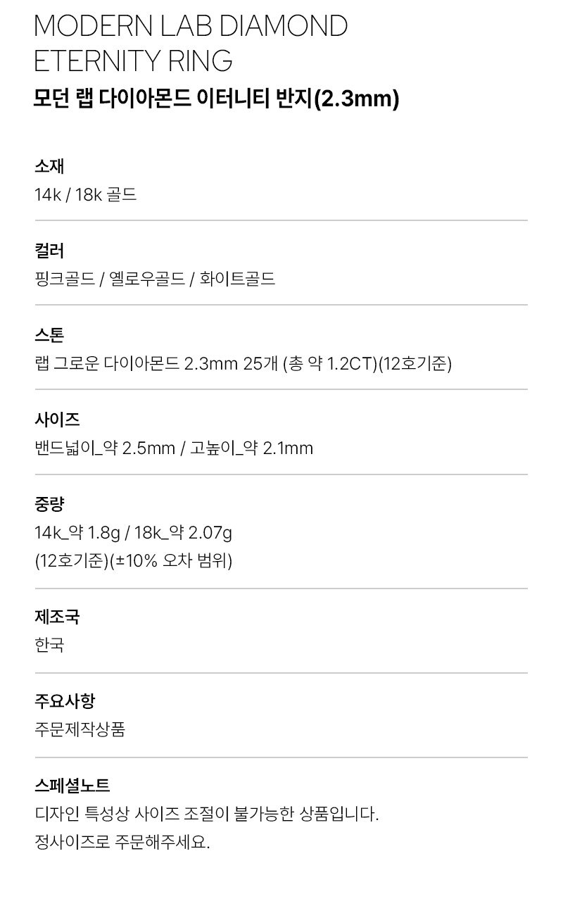 도로시 14k 모던 랩 다이아몬드 이터니티 반지(2.3mm) 6-10호