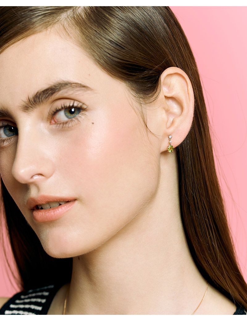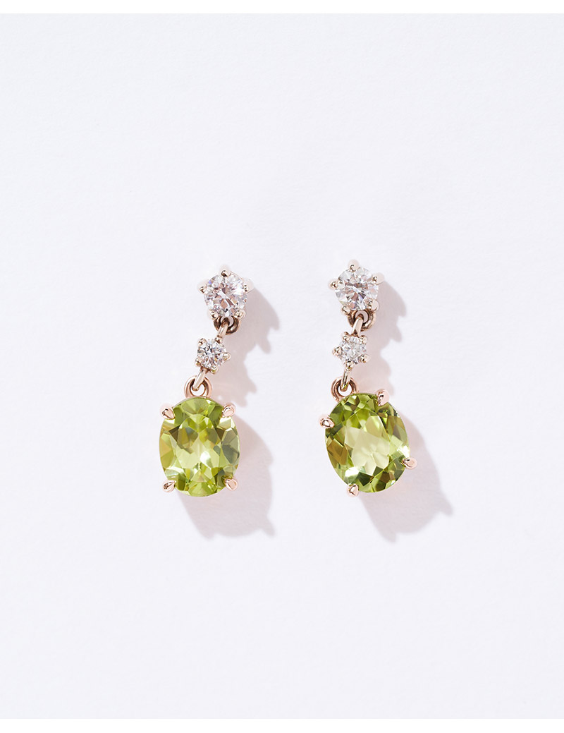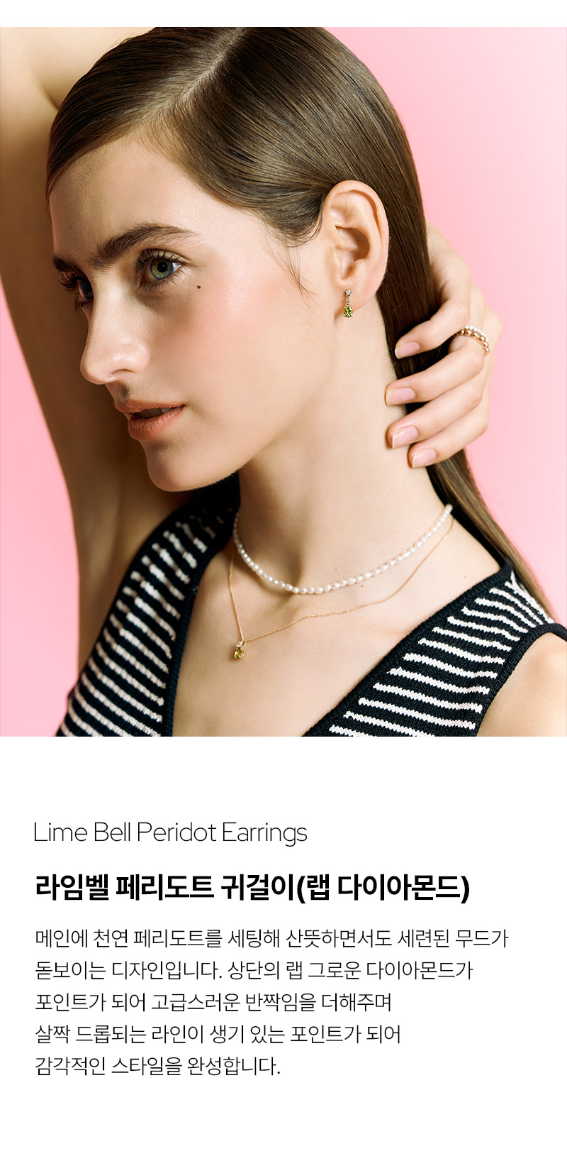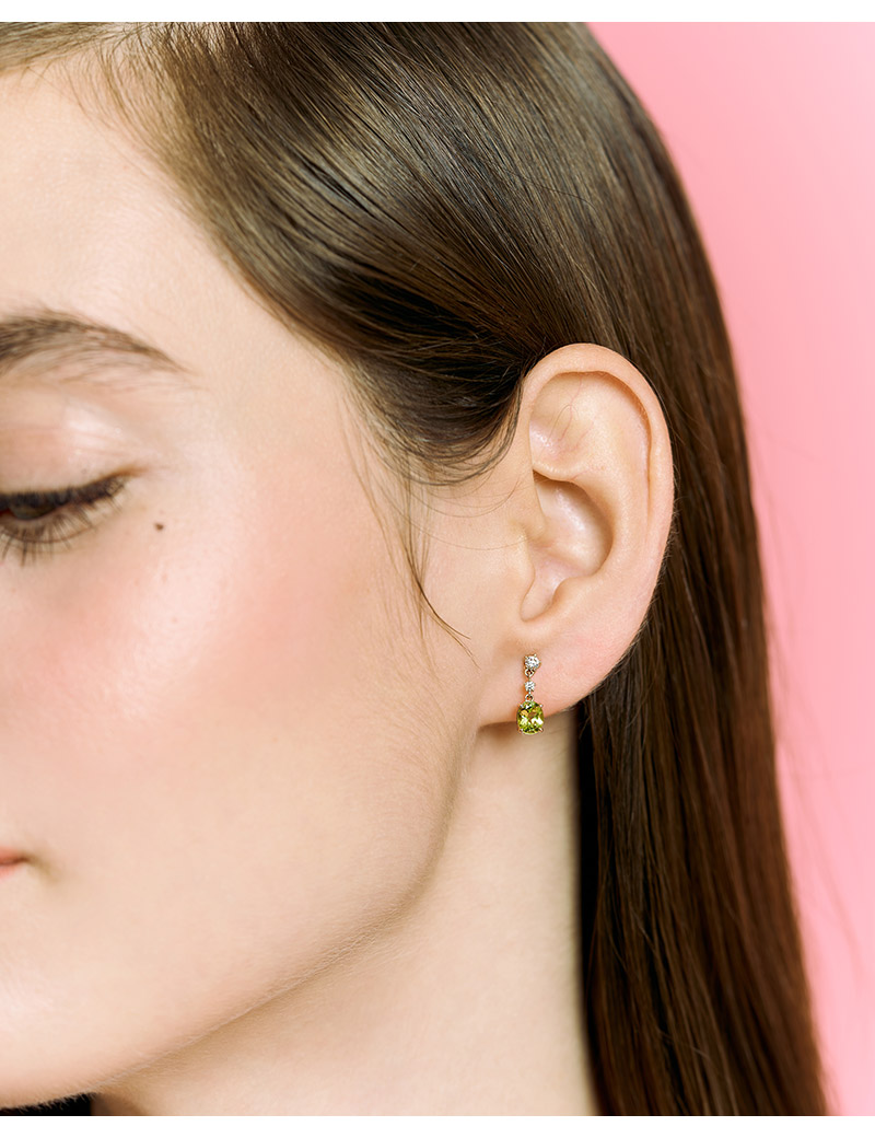 도로시 18k 라임벨 페리도트 귀걸이_랩 다이아몬드