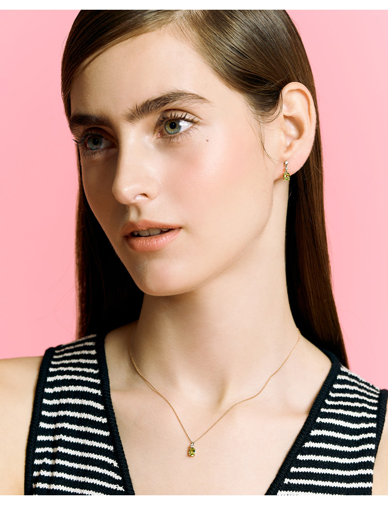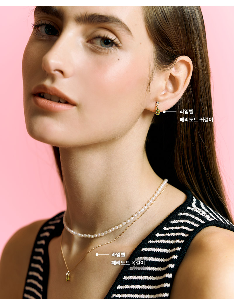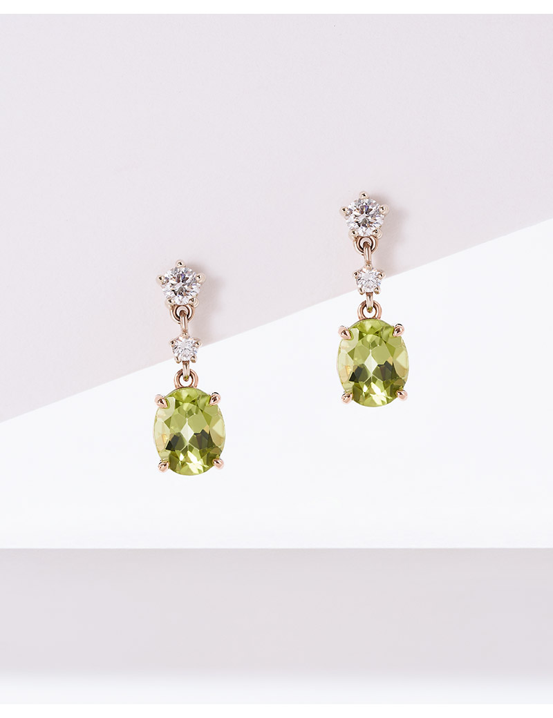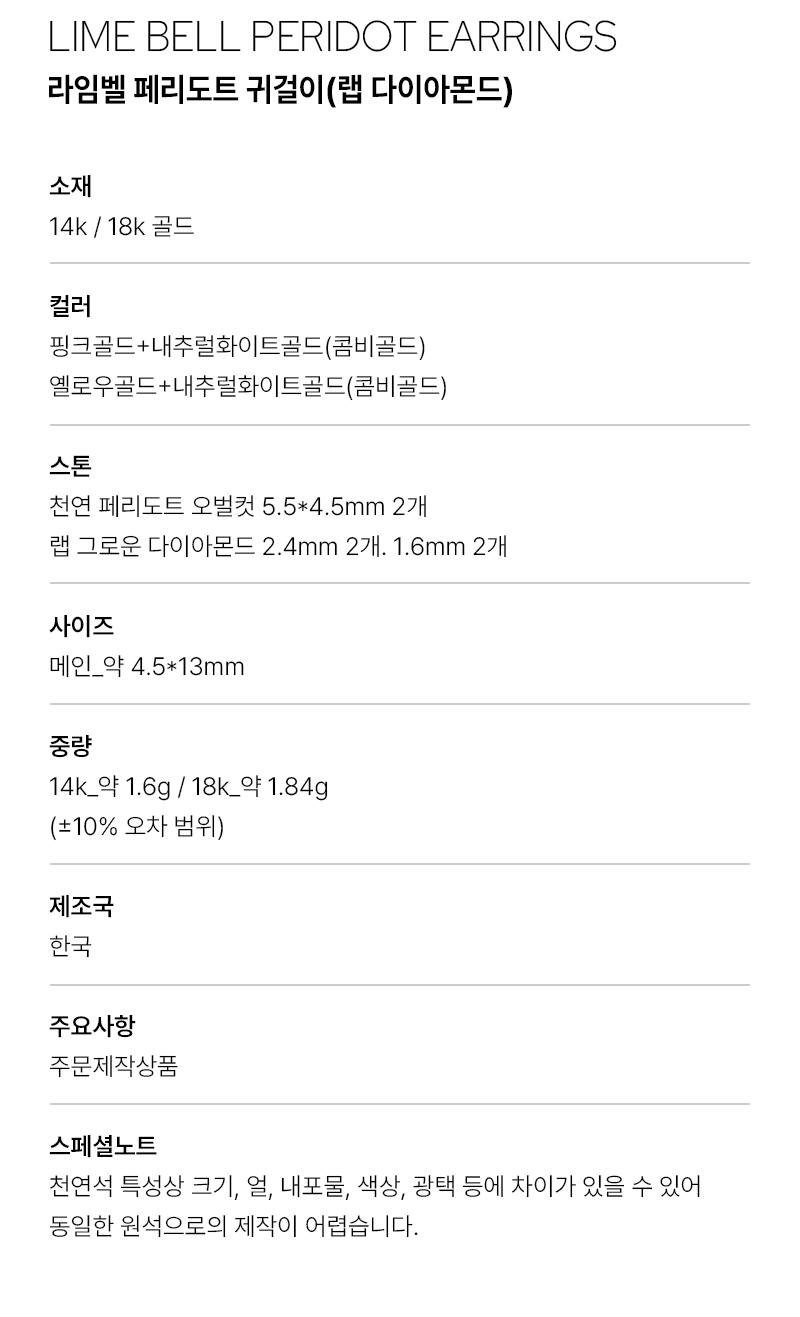 도로시 18k 라임벨 페리도트 귀걸이_랩 다이아몬드