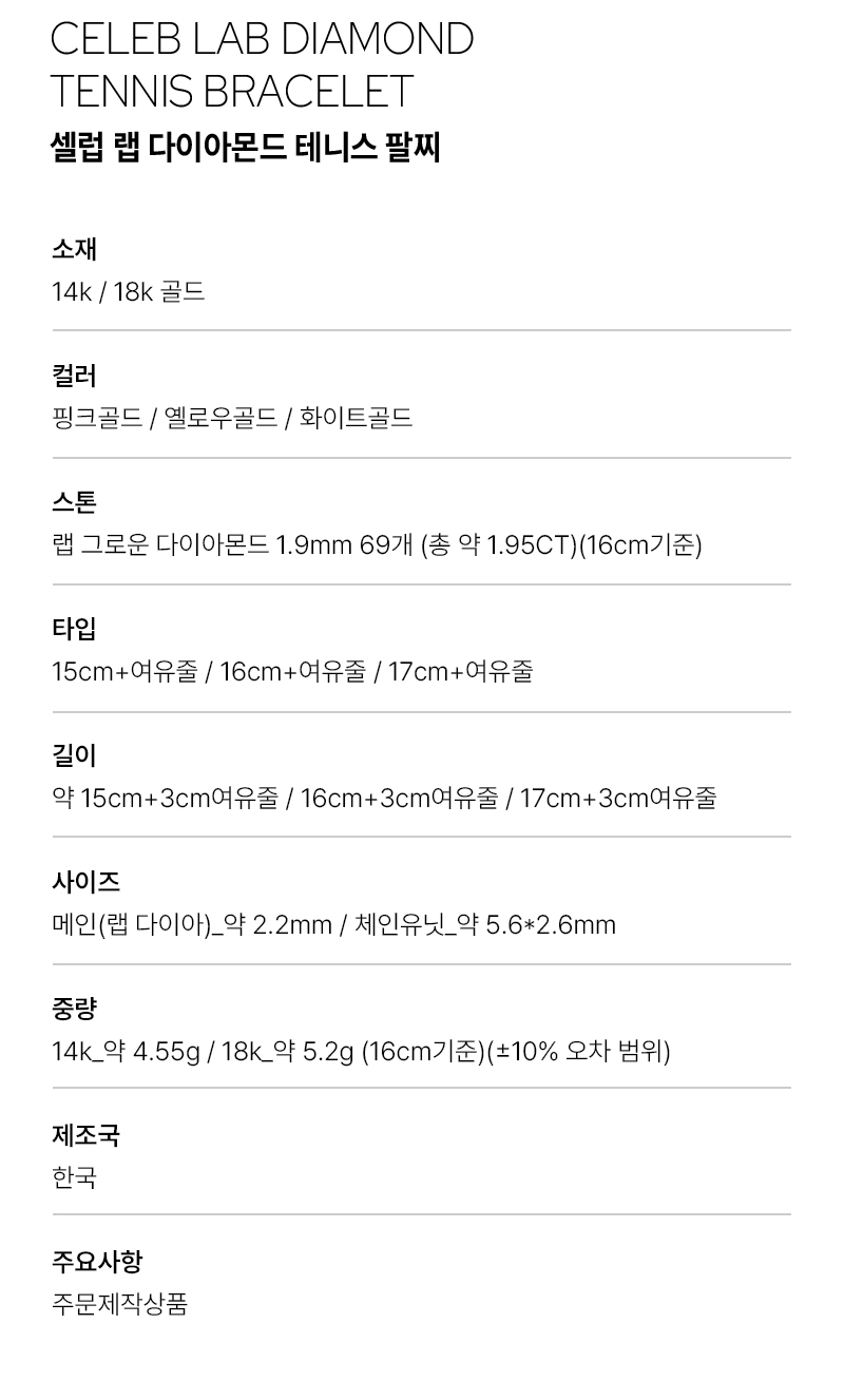 도로시 18k 셀럽 랩 다이아몬드 테니스 팔찌 15cm