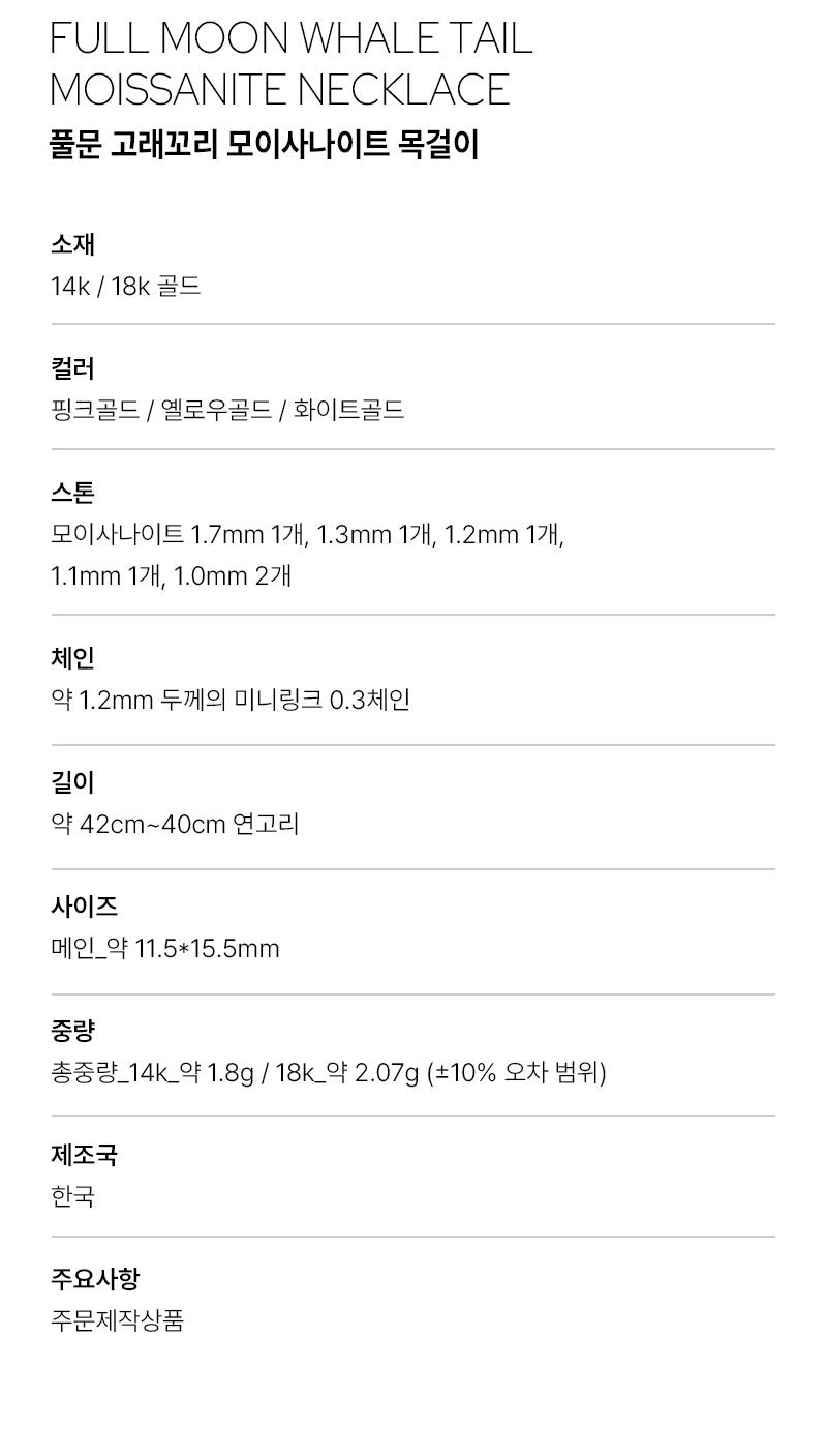 도로시 18k 풀문 고래꼬리 모이사나이트 목걸이