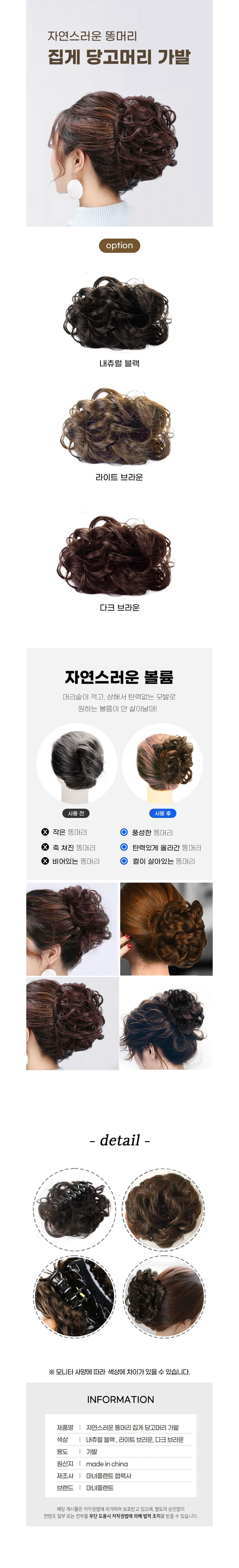 자연스러운 똥머리 집게 당고머리 가발 풍성 업스타일
