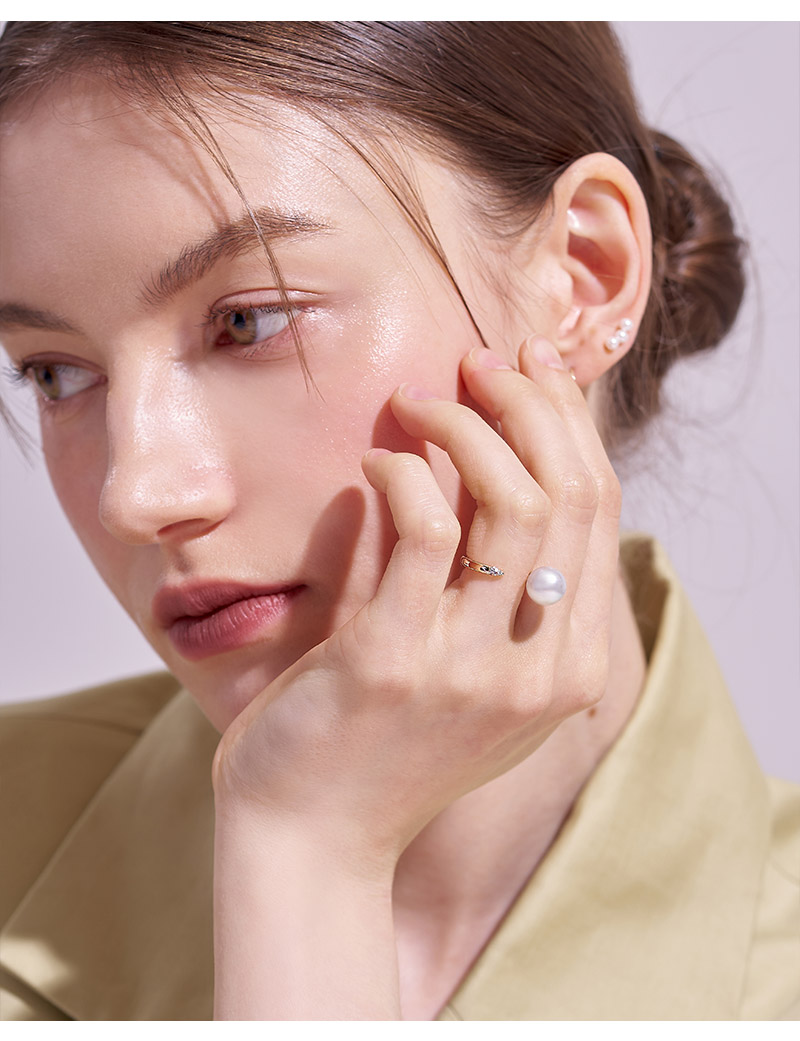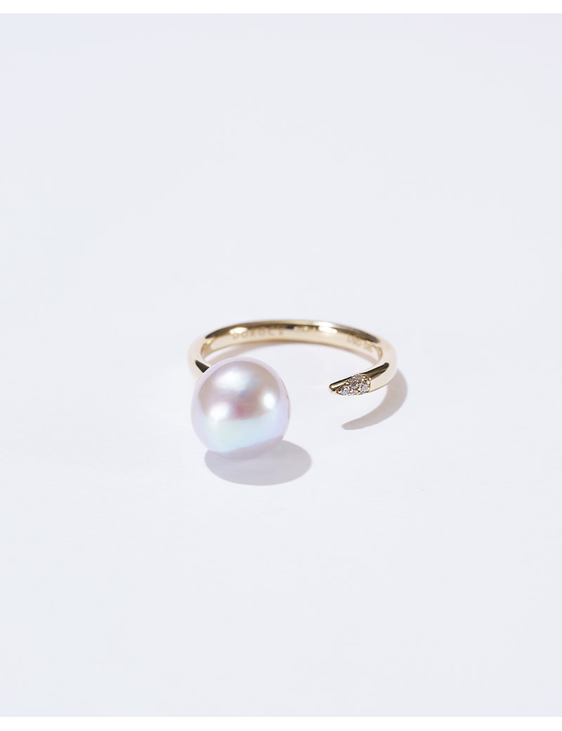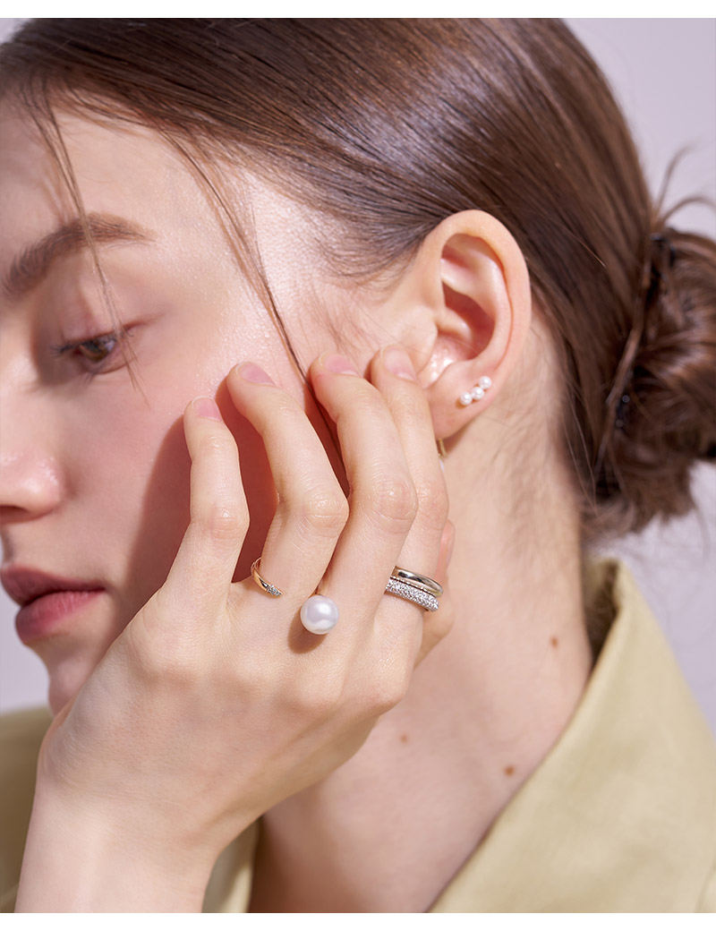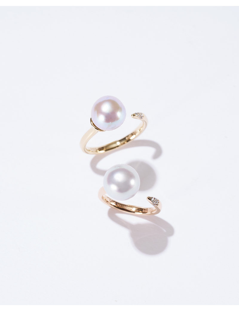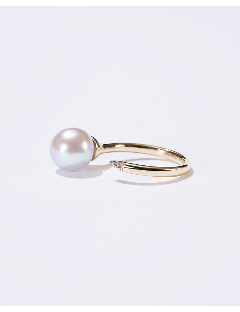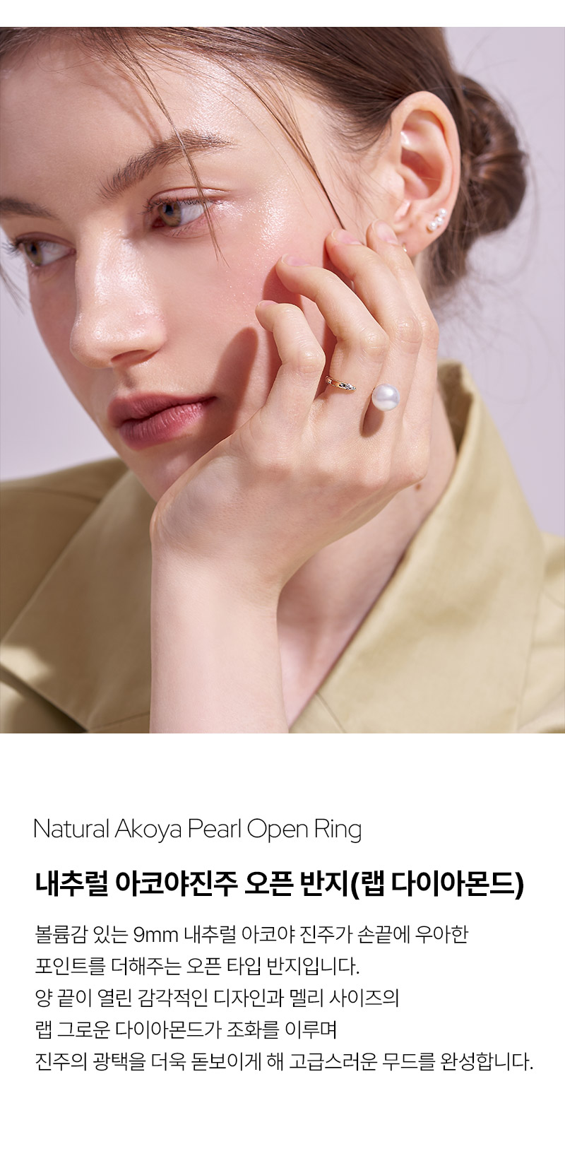 도로시 18k 내추럴 아코야진주 오픈 반지_랩 다이아몬드