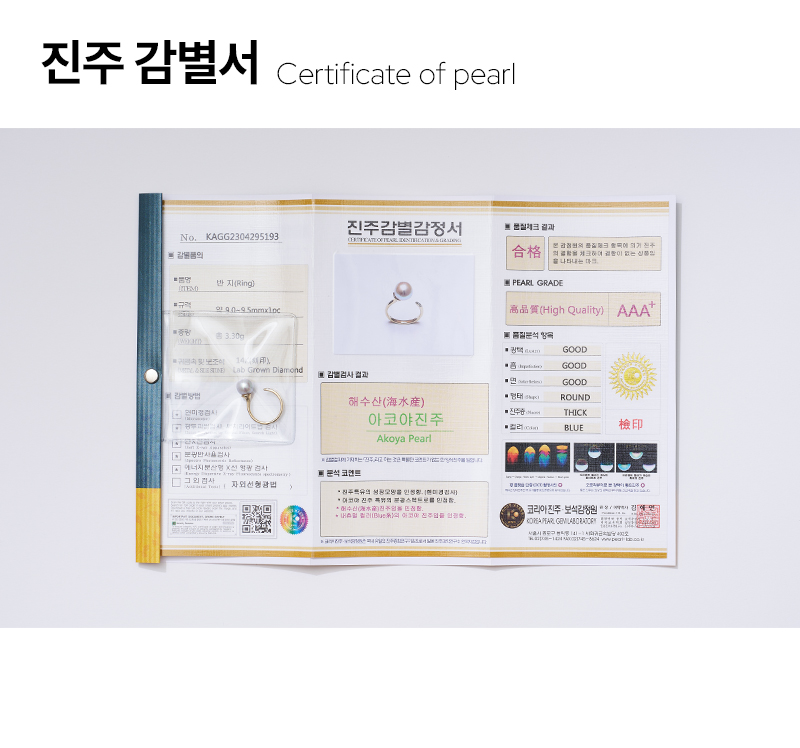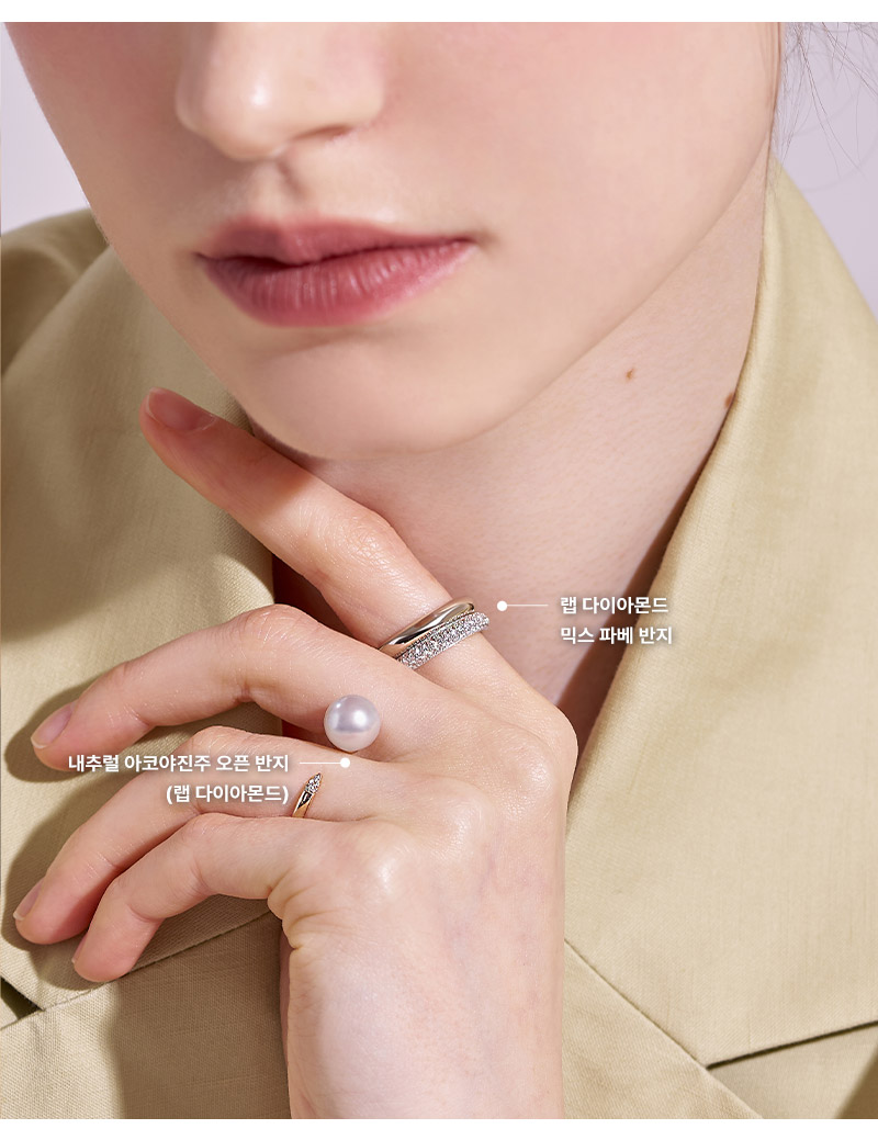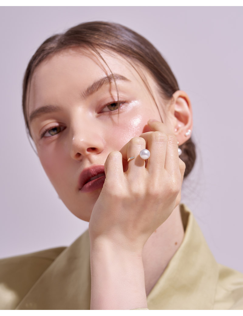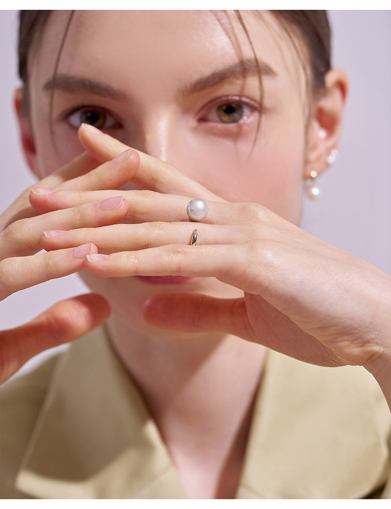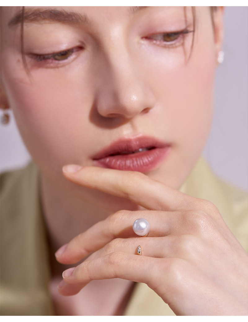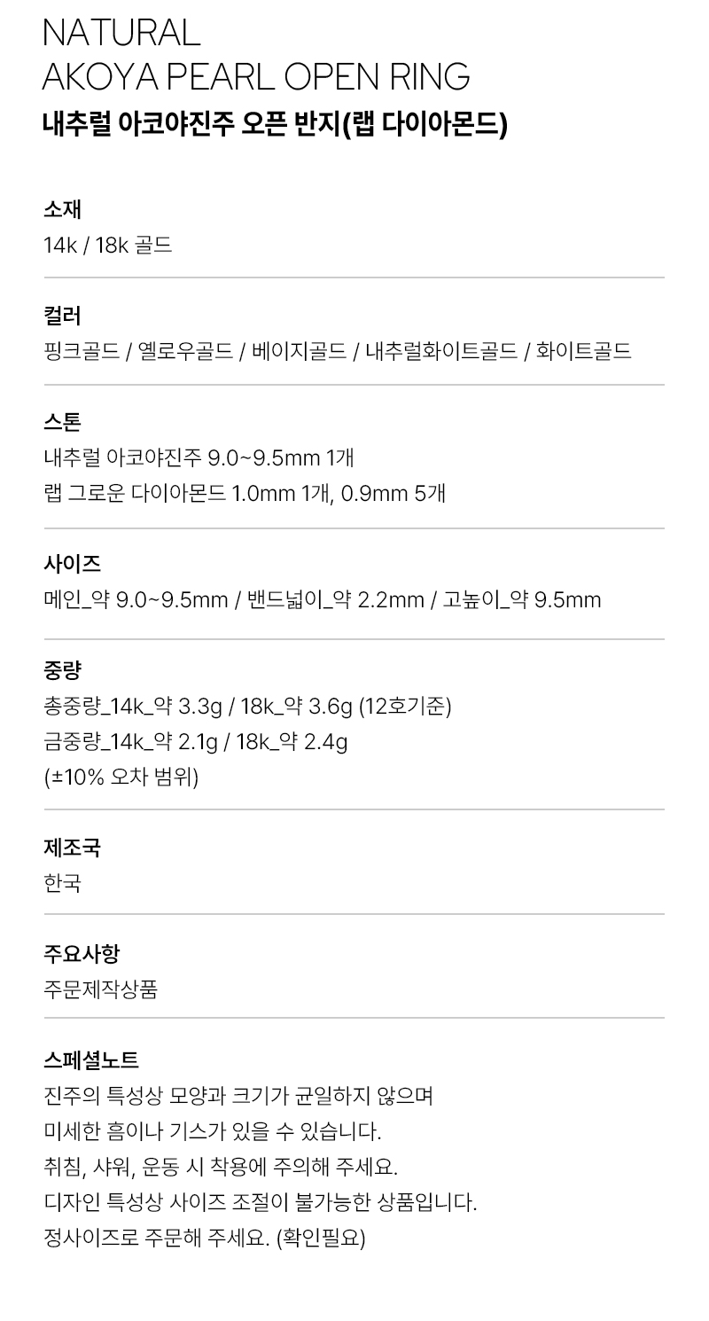 도로시 18k 내추럴 아코야진주 오픈 반지_랩 다이아몬드