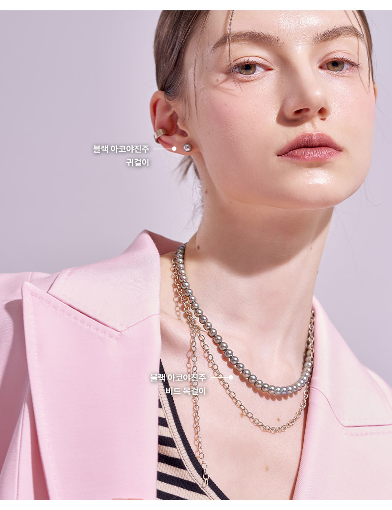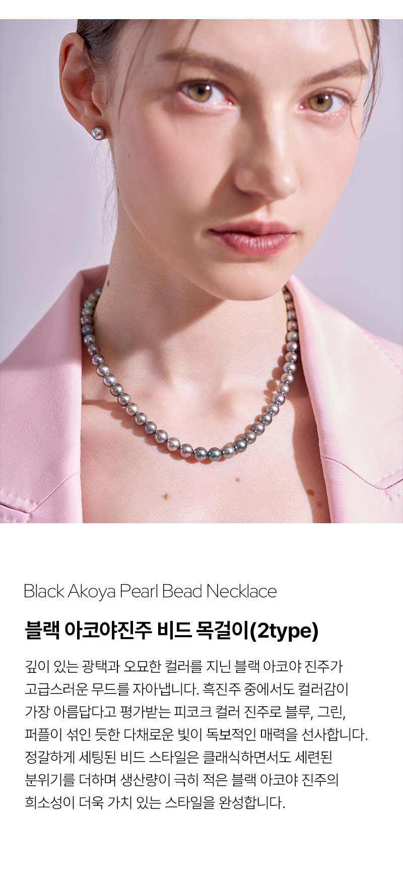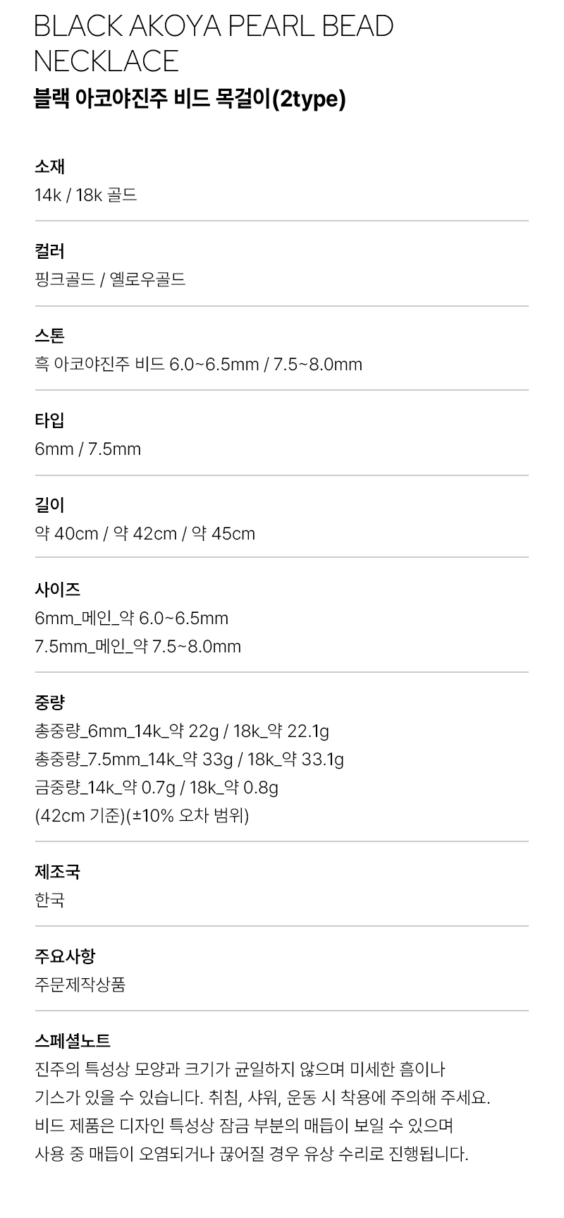 도로시 14k 블랙 아코야진주 비드 목걸이_소 약 42cm