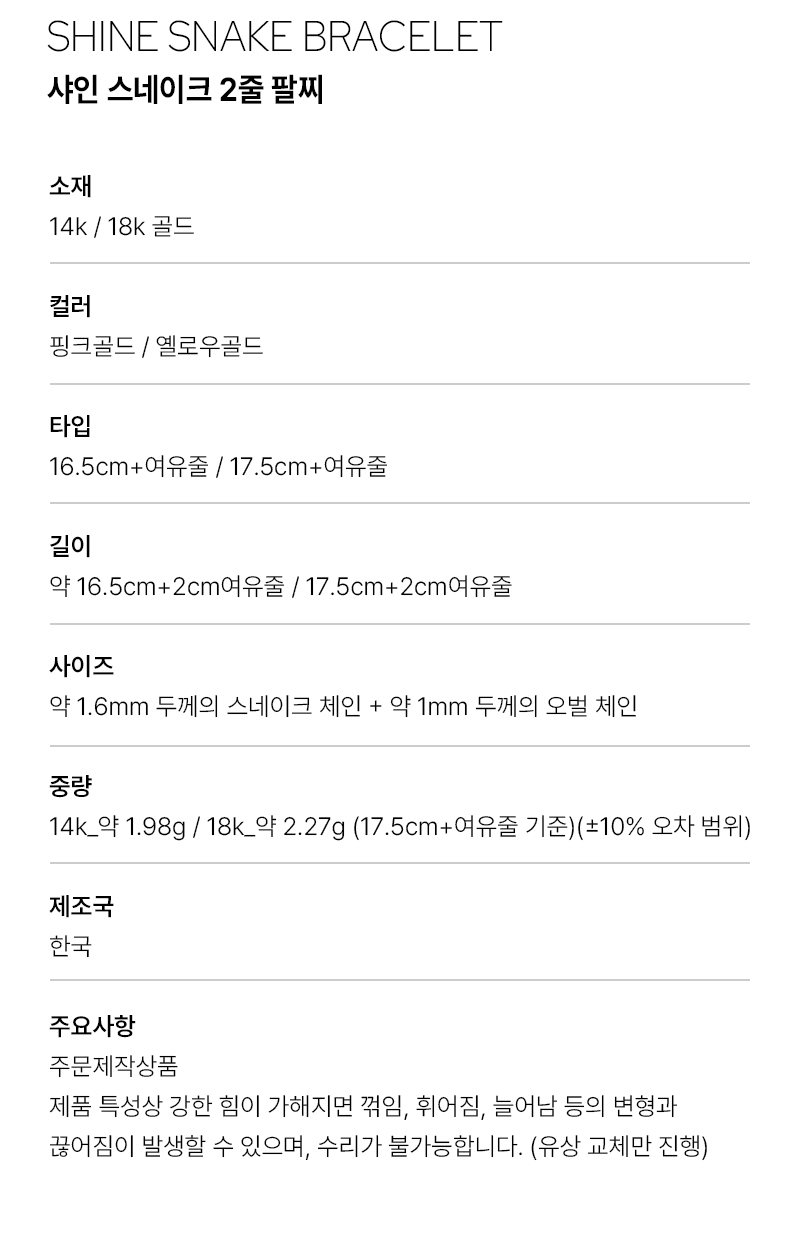 도로시 14k 샤인 스네이크 2줄 팔찌_약16.5cm+여유줄