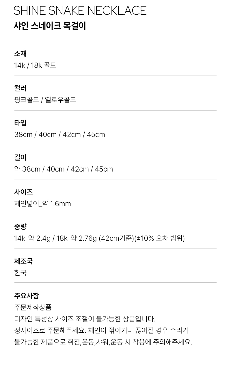 도로시 14k 샤인 스네이크 목걸이_45cm