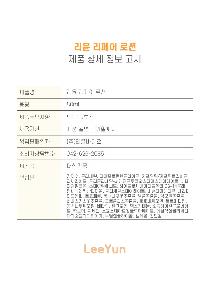 (LEEYUN)기능성 화장품 리윤 리페어 로션 80ml / 자체특허성분함유
