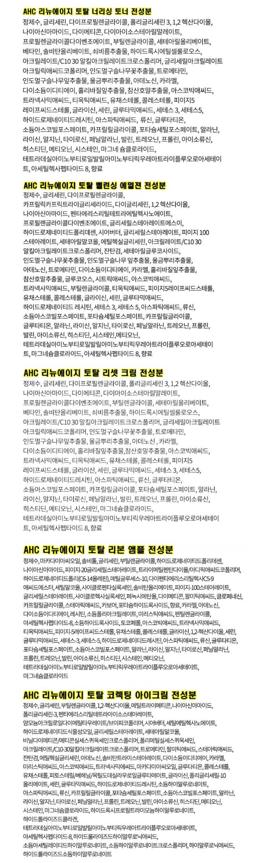 - AHC 리뉴에이지 토탈 4종 세트 구성