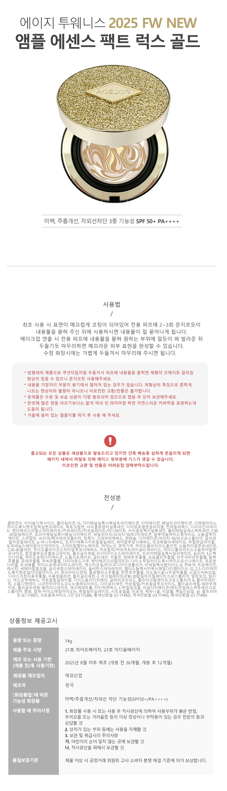 에이지투웨니스에이지20s 럭스 골드 앰플 에센스 팩트 최신상 25년형