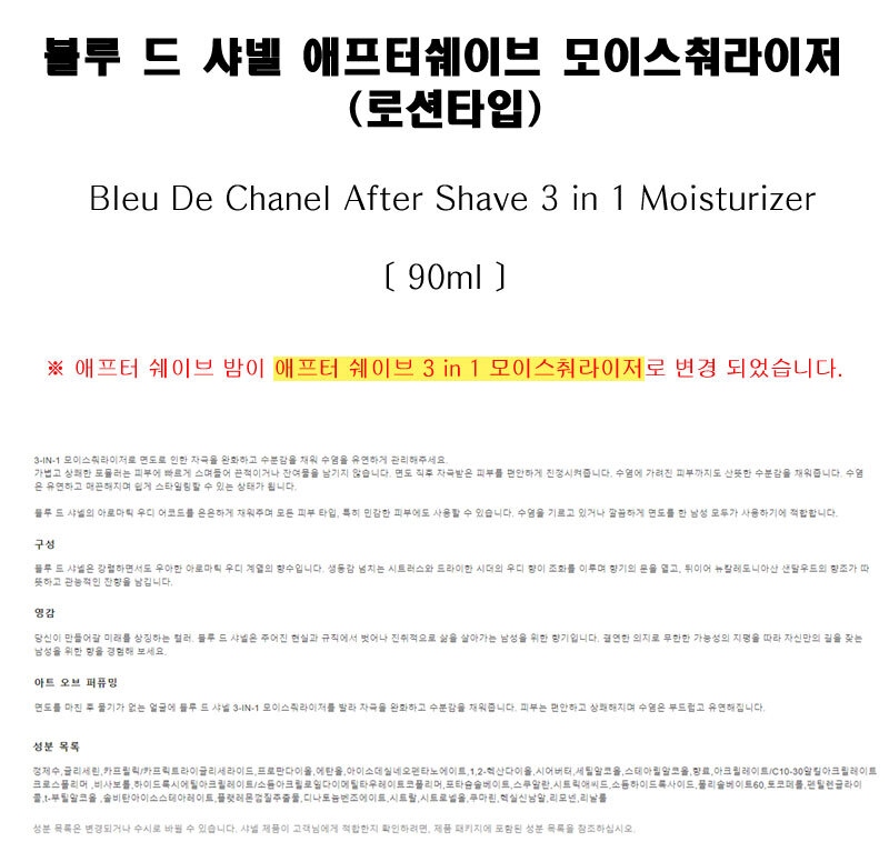블루 드 샤넬 애프터쉐이브모이스춰라이저 90ml
