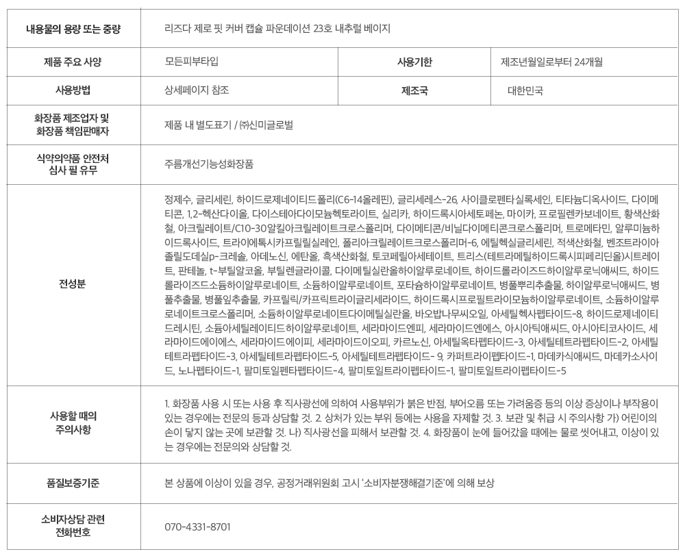 NEW 리즈다 제로 핏 커버 캡슐 파운데이션