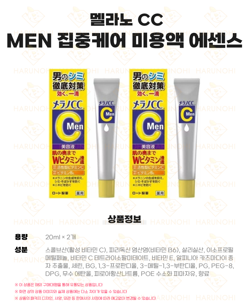 멜라노 CC MEN 맨 집중케어 화이트닝 에센스 미용액 20ml X 2개