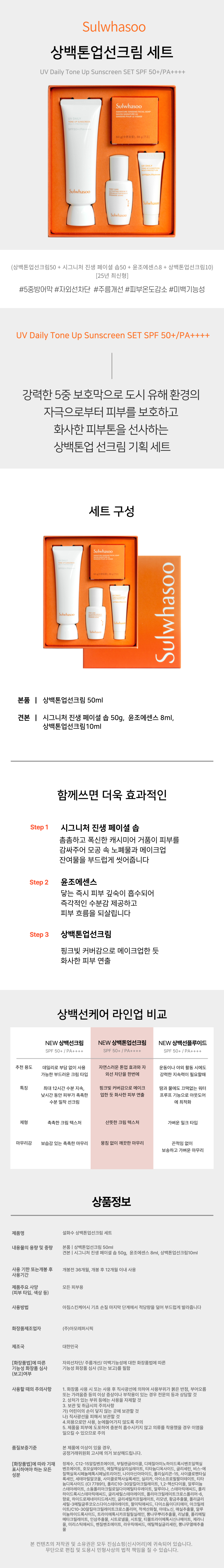 상품명설화수 상백 톤업선크림 50ml 기획 세트 SPF50+ / PA++++ 25년 5월 최신 / 단일