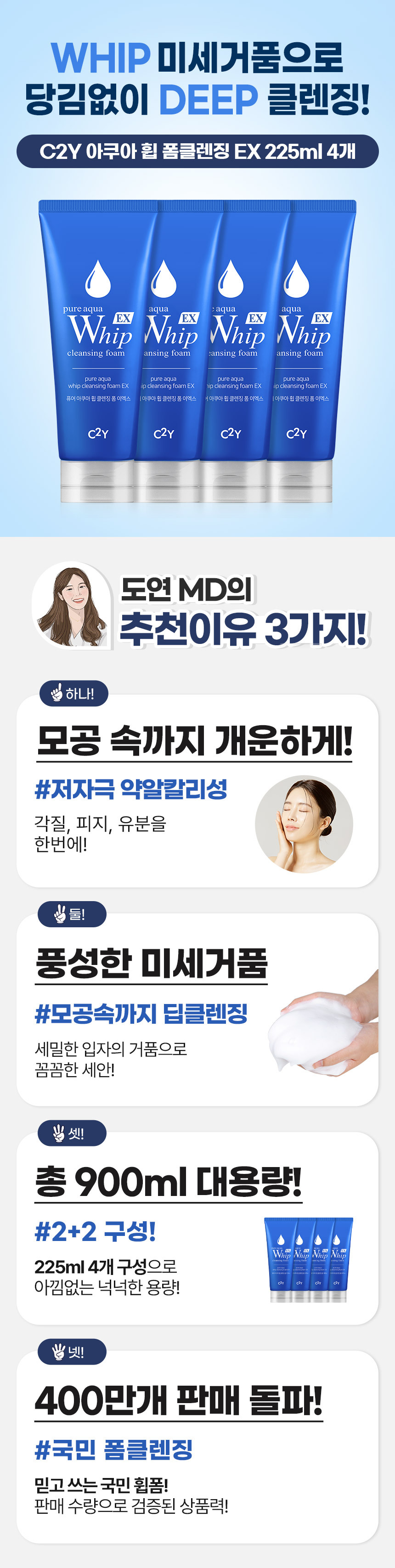 아쿠아 EX 휩 폼클렌징 대용량 225ml 4개 클렌징폼