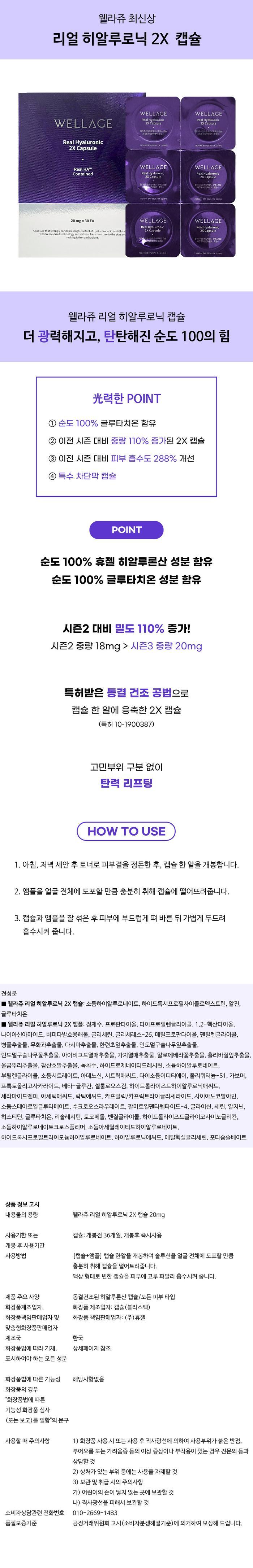 상품명웰라쥬 리얼 히알루로닉 리프팅 캡슐 시즌3 30회분 / 웰라쥬 리얼 히알루로닉 리프팅 캡슐 시즌3 30회분