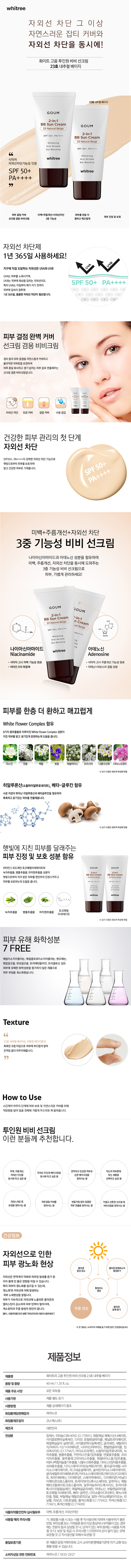 고움 투인원 비비선크림 23호 2개 자외선차단 커버 선비비