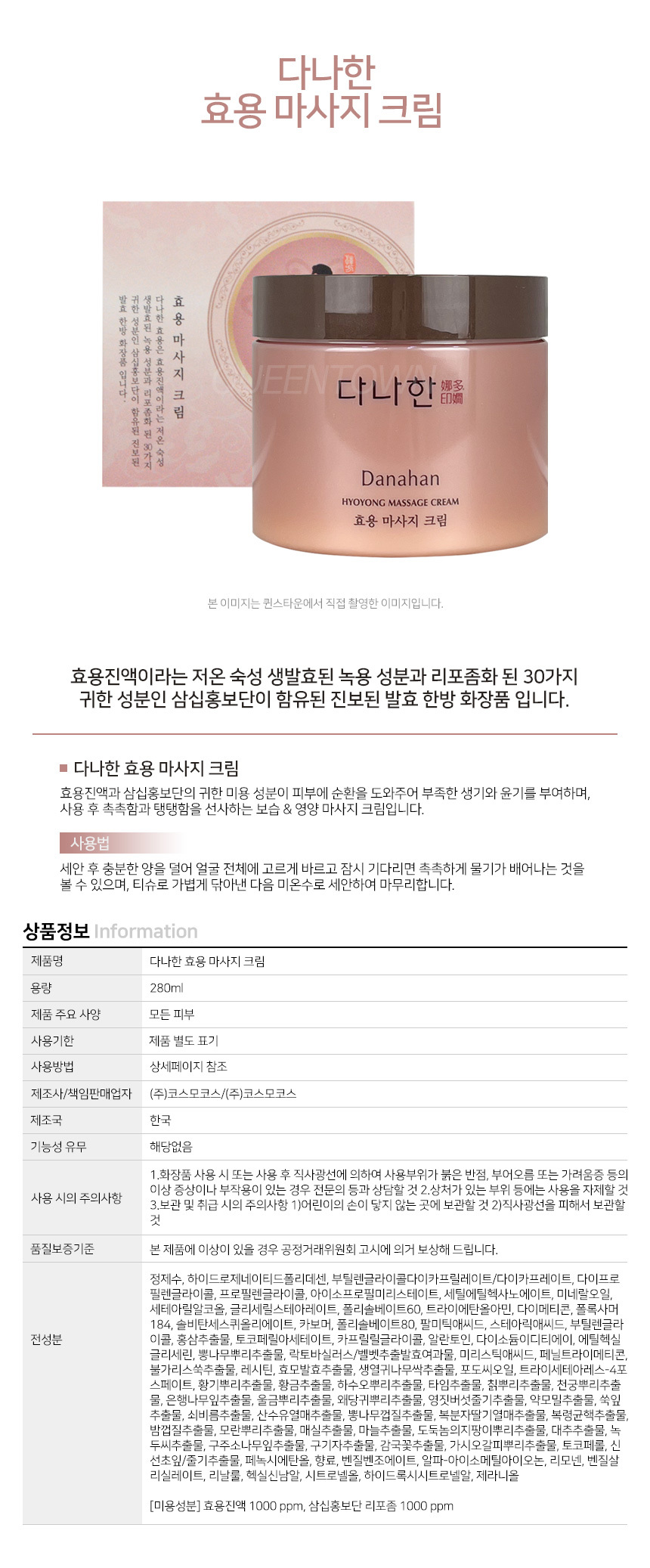 다나한 효용 마사지 크림 280ml 보습 영양