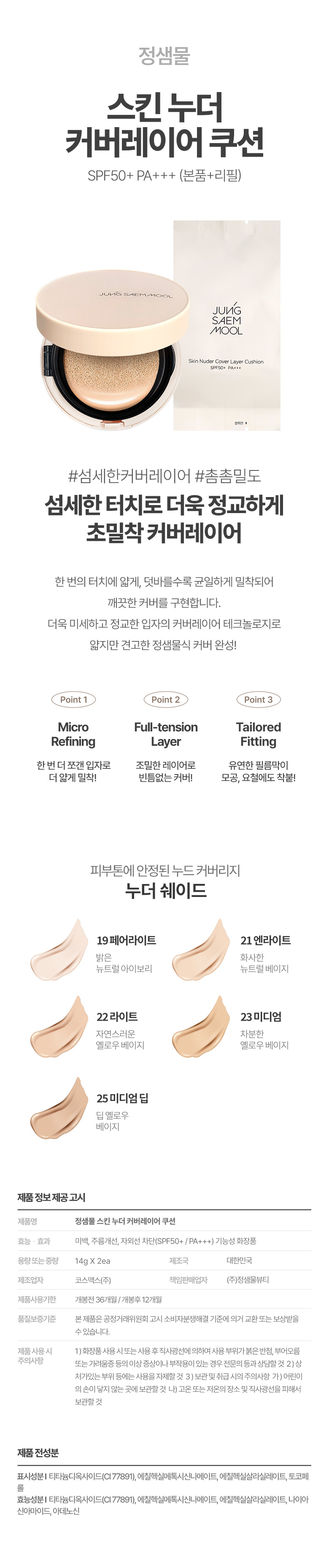 (NS홈쇼핑)정샘물 스킨 누더/롱웨어/커버레이어 쿠션(본품+리필)34903411