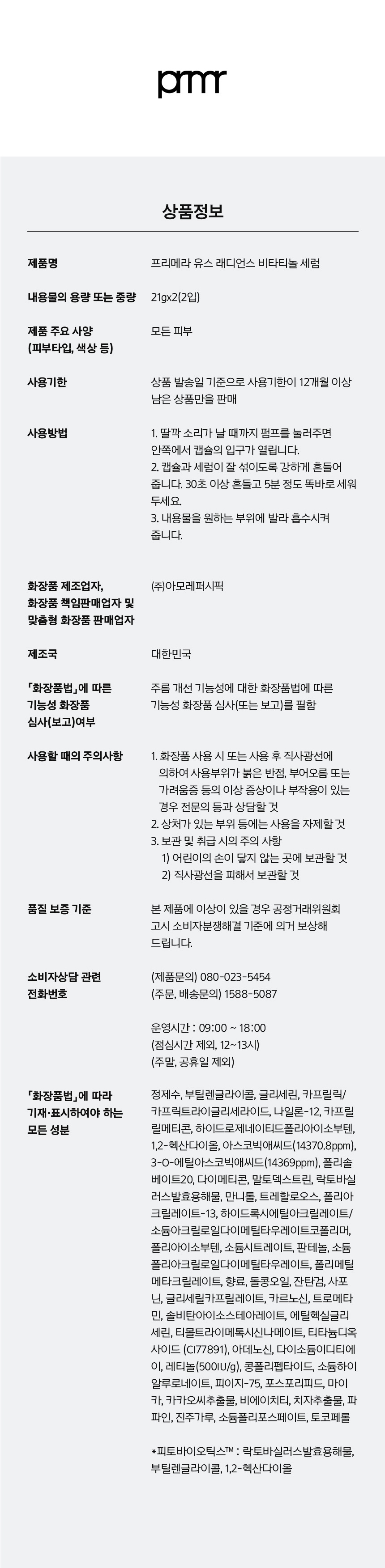 PRMR유스 래디언스 비타티놀 세럼 21g(2입)(비타티놀 7g+3종kit+UV세라캡슐)