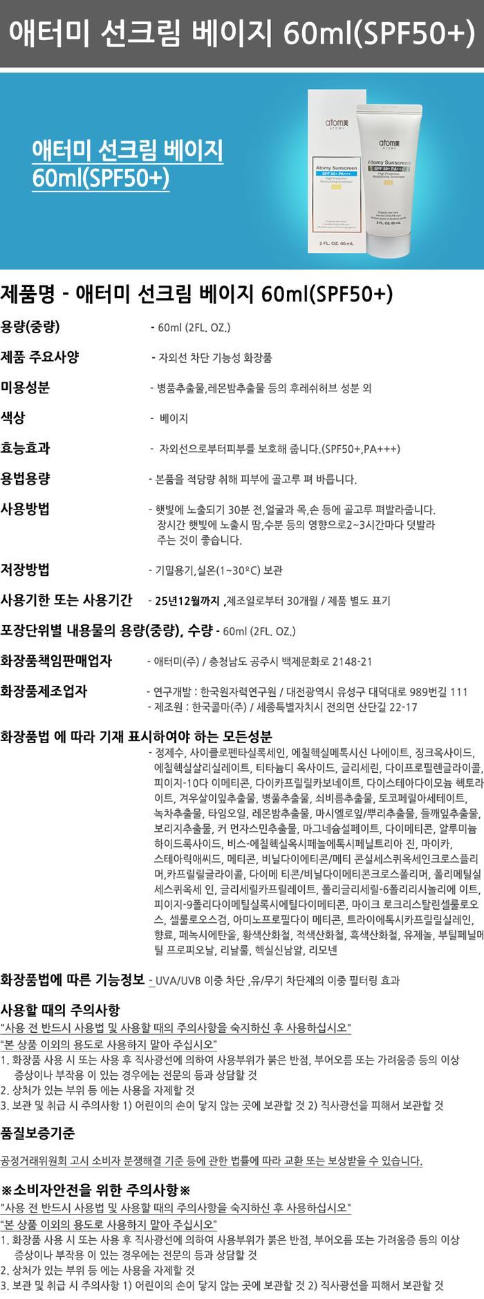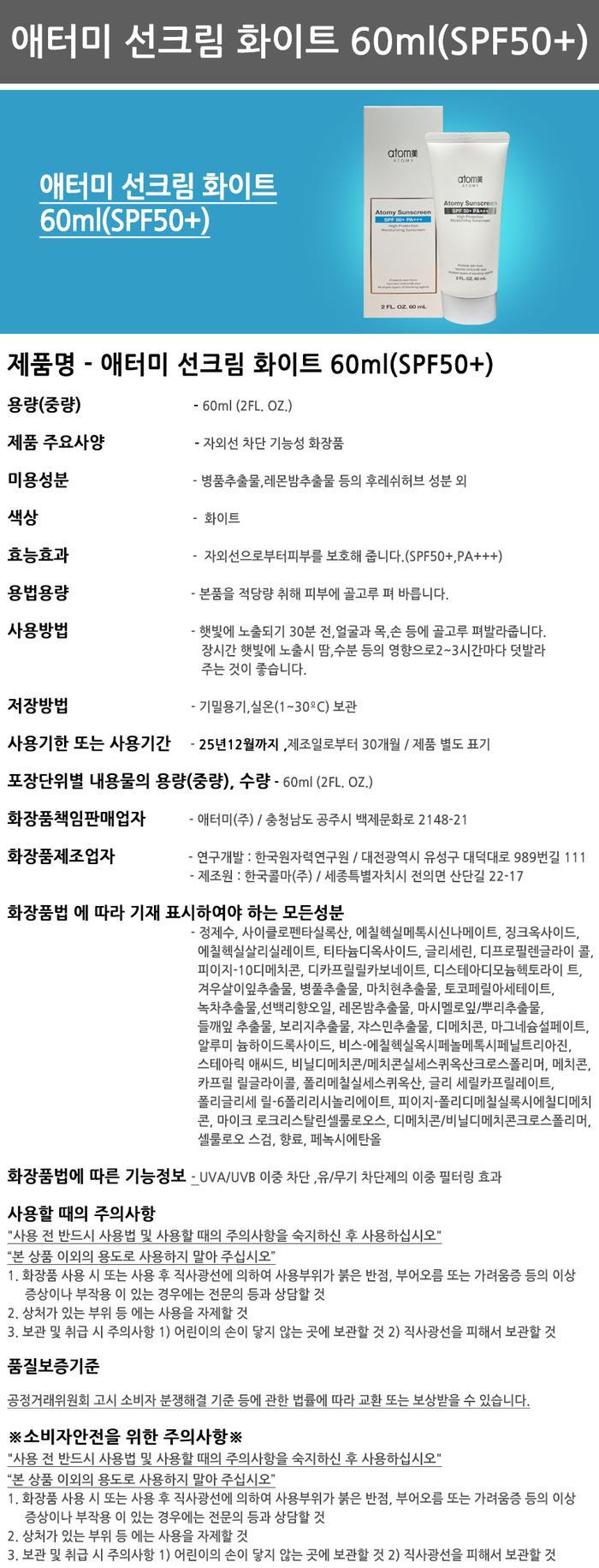 기타 애터미 선크림 베이지 화이트 60ml SPF50+ 2개 선로션