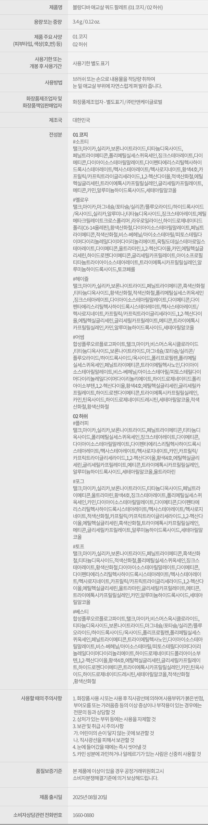 블랑디바 애교살 쿼드 팔레트 아이섀도우