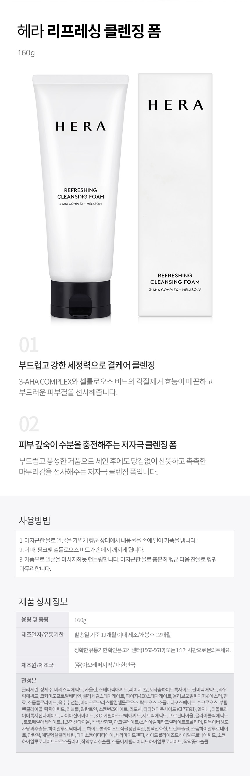헤라 리프레싱 클렌징 폼 160g